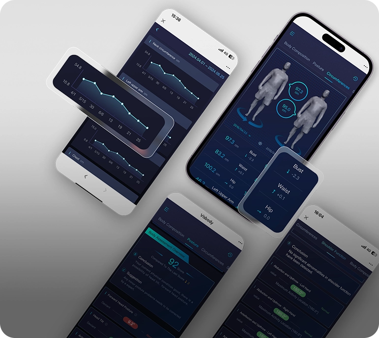 Stärken Sie Ihre Mitglieder mit dem 3D-Körperscanner Visbody-M30, Dadurch können sie wichtige Daten erfassen und verfolgen, während sie ihre Ziele in Bezug auf Wohlbefinden und Körperform erreichen. Stellen Sie sicher, dass Sie genau sind, Detaillierte Einblicke für eine effektivere und personalisiertere Gesundheits- und Wellnessreise.